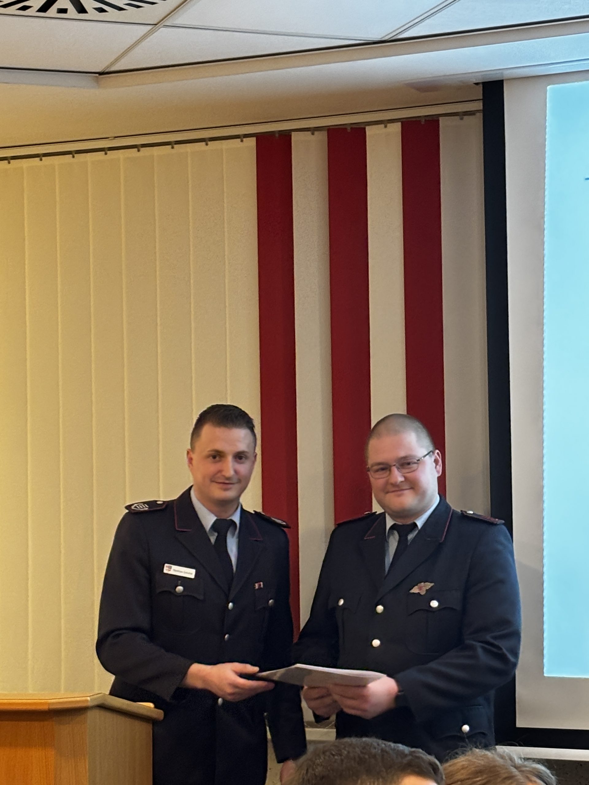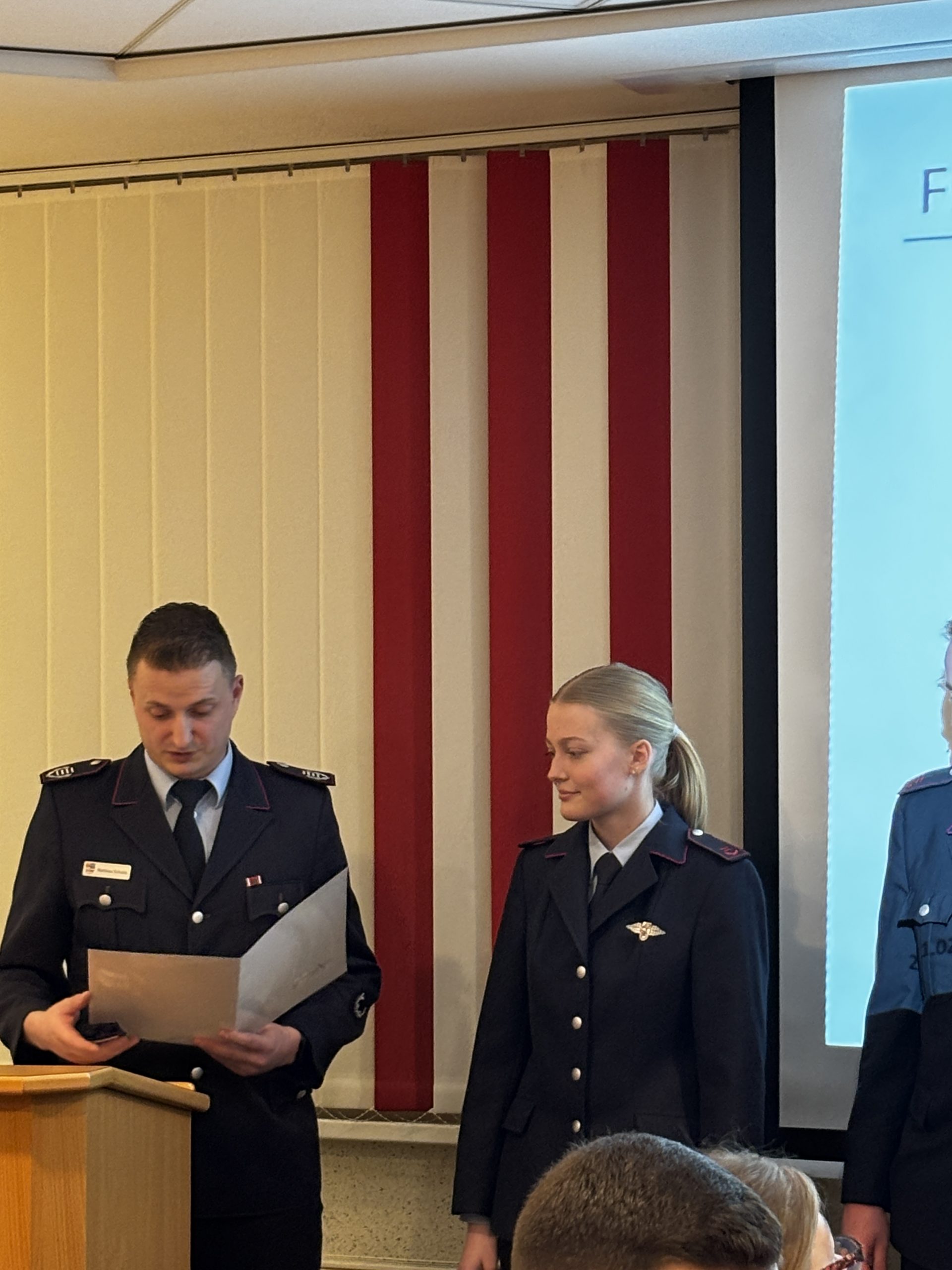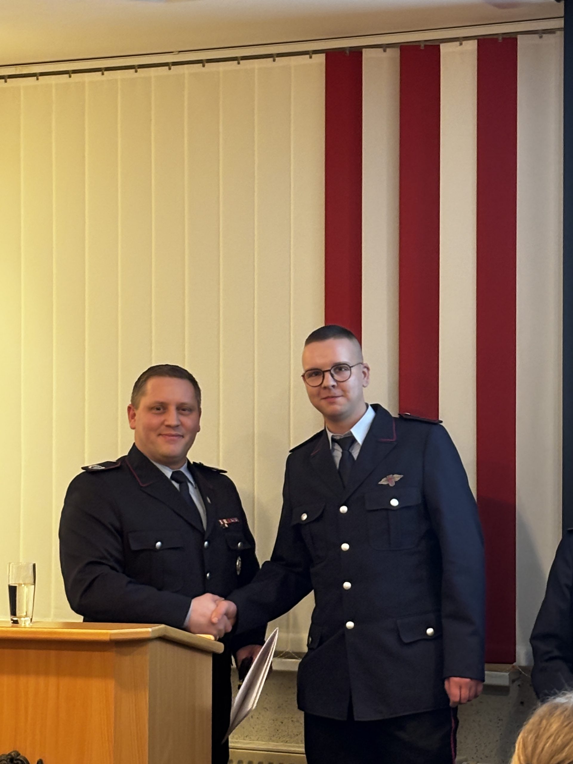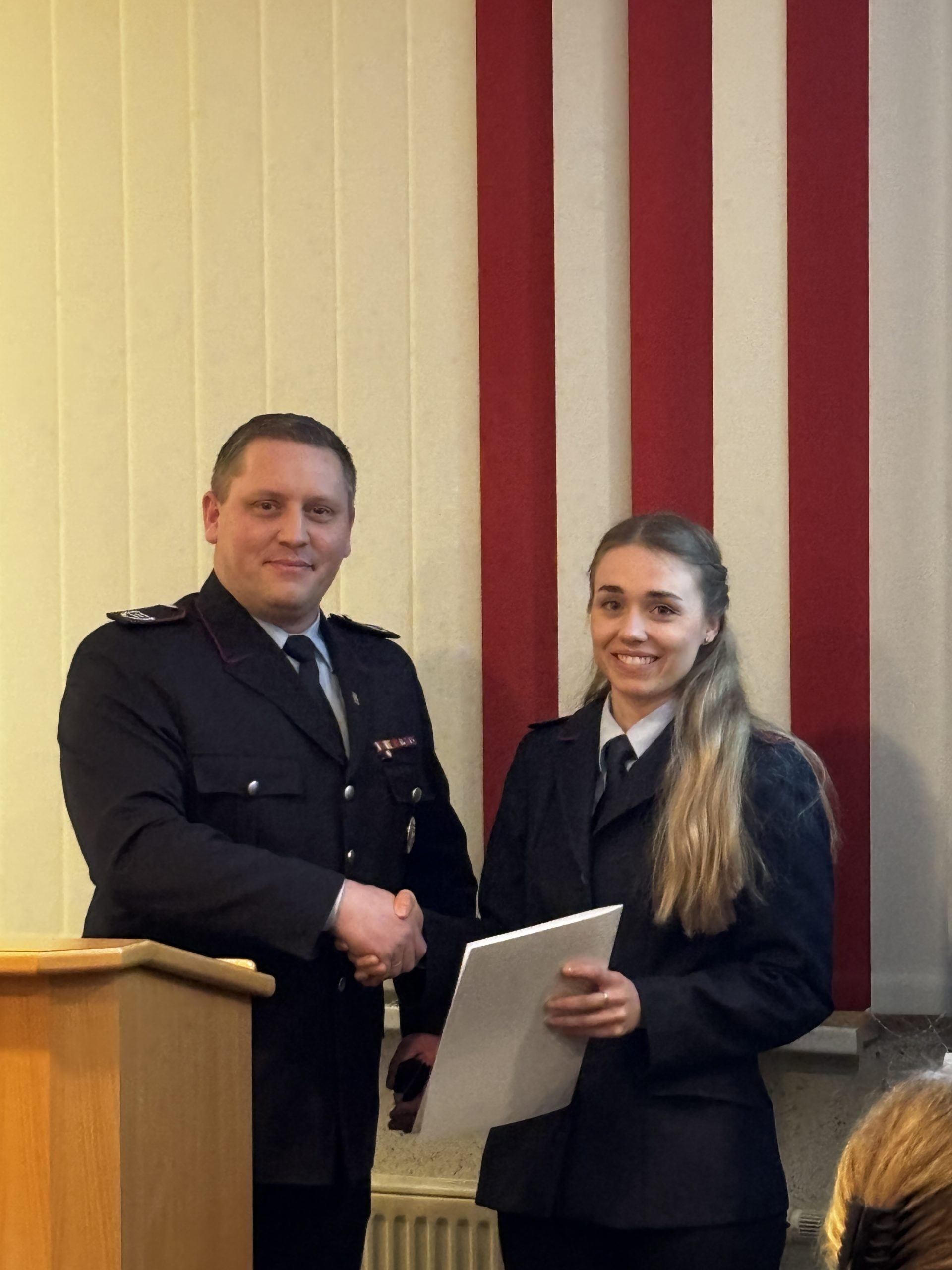 Zum Feuerwehrmann beziehungsweise zur Feuerwehrfrau wurden Tom Meyer, Lukas Nagel, Clemens Niemann, Felix Sandrock, Emma Seemann und Stefan Schrand befördert. Sönke Block und Johanna Kruse erhielten den Dienstgrad Oberfeuerwehrmann/-frau, Lukas Schütte wurde zum 1. Hauptfeuerwehrmann befördert. Die Beförderungen übernahm Ortsbrandmeister Matthias Schulte.