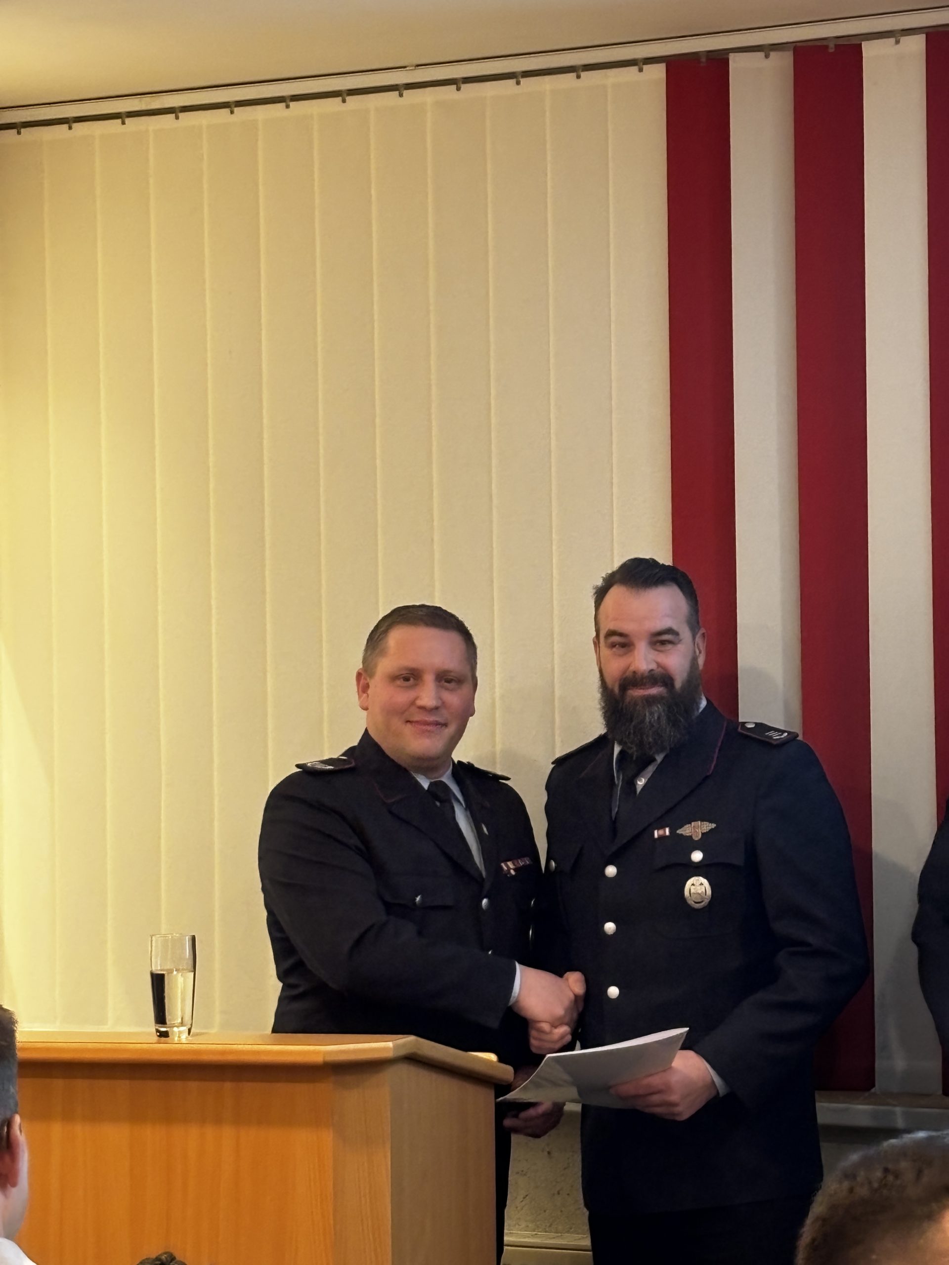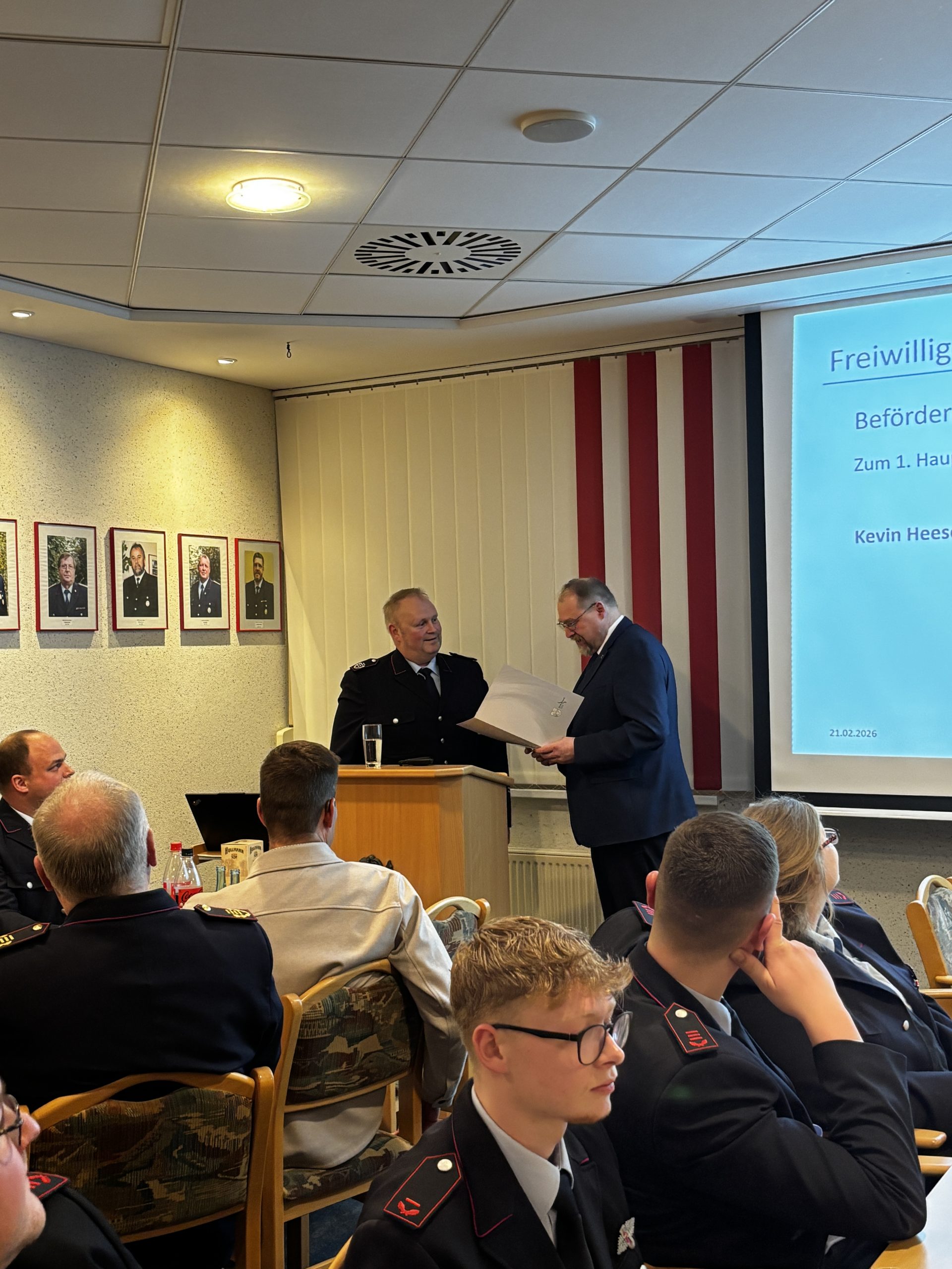 Bürgermeister Thomas Otto beförderte zudem den stellvertretenden Gemeindebrandmeister Kevin Heese zum 1. Hauptbrandinspektor.