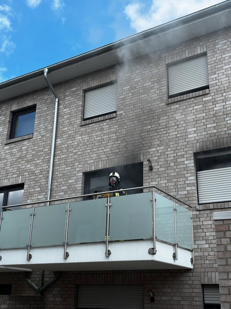 Beim Eintreffen drang bereits Rauch aus den Fenstern einer Wohnung, sofort ging ein Trupp unter Atemschutz zur Brandbekämpfung in die betroffene Wohnung vor. 🔥💨