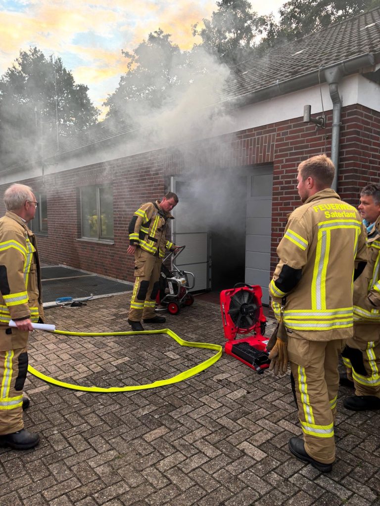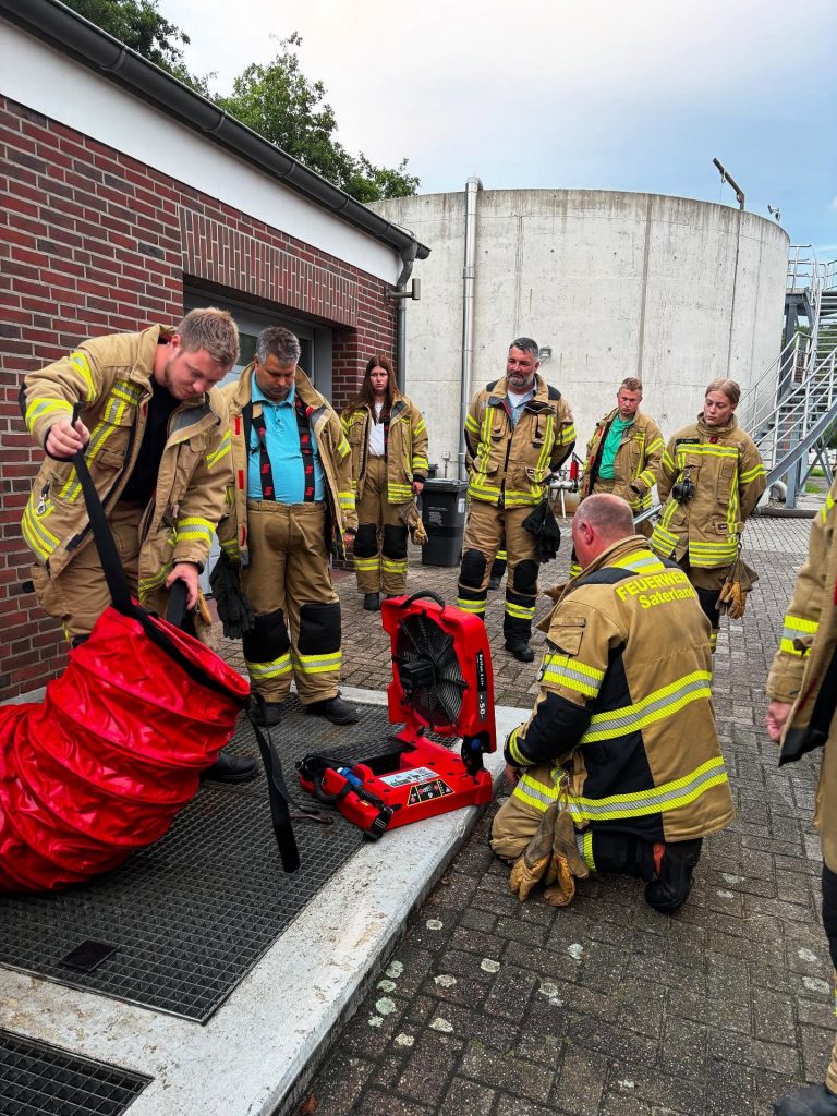Am 29. Juli 2025 stand bei unserer Gruppe 1 ein besonders einsatzrelevantes Thema auf dem Dienstplan: die taktische Belüftung. Gemeinsam mit Ausbilder Frank Sinnigen ging es zur Kläranlage in Scharrel, um dort praxisnah zu trainieren. Die taktische Belüftung ist ein fester Bestandteil moderner Brandbekämpfung. Mithilfe von Hochleistungslüftern wird Rauch gezielt aus dem Gebäude gedrückt, was nicht nur die Sicht für die vorgehenden Trupps verbessert, sondern auch die Rettung von Personen erleichtert und die Bausubstanz schützt. Solche Ausbildungsdienste sind unerlässlich – denn im Einsatz zählt jede Sekunde. Deshalb setzen wir auf regelmäßige und realitätsnahe Übungen, um im Ernstfall schnell, sicher und effektiv helfen zu können.