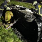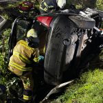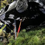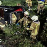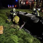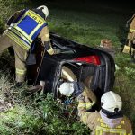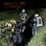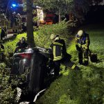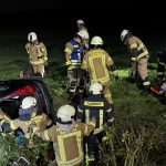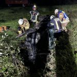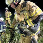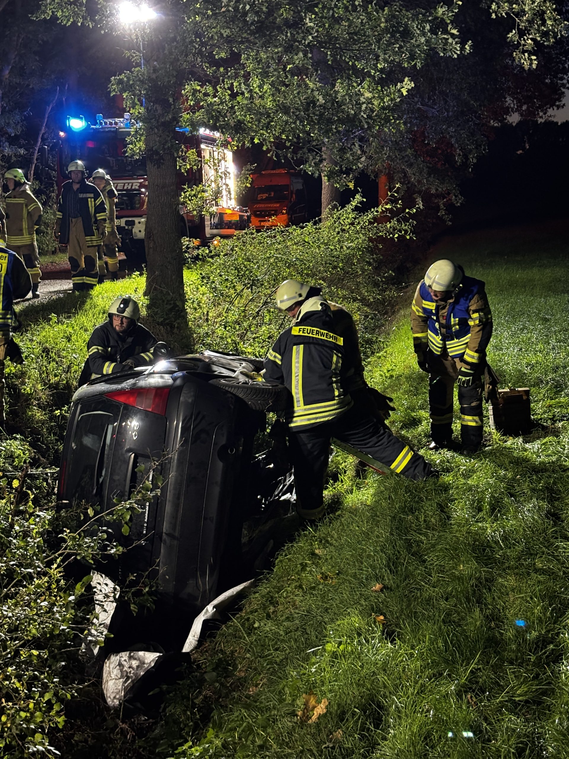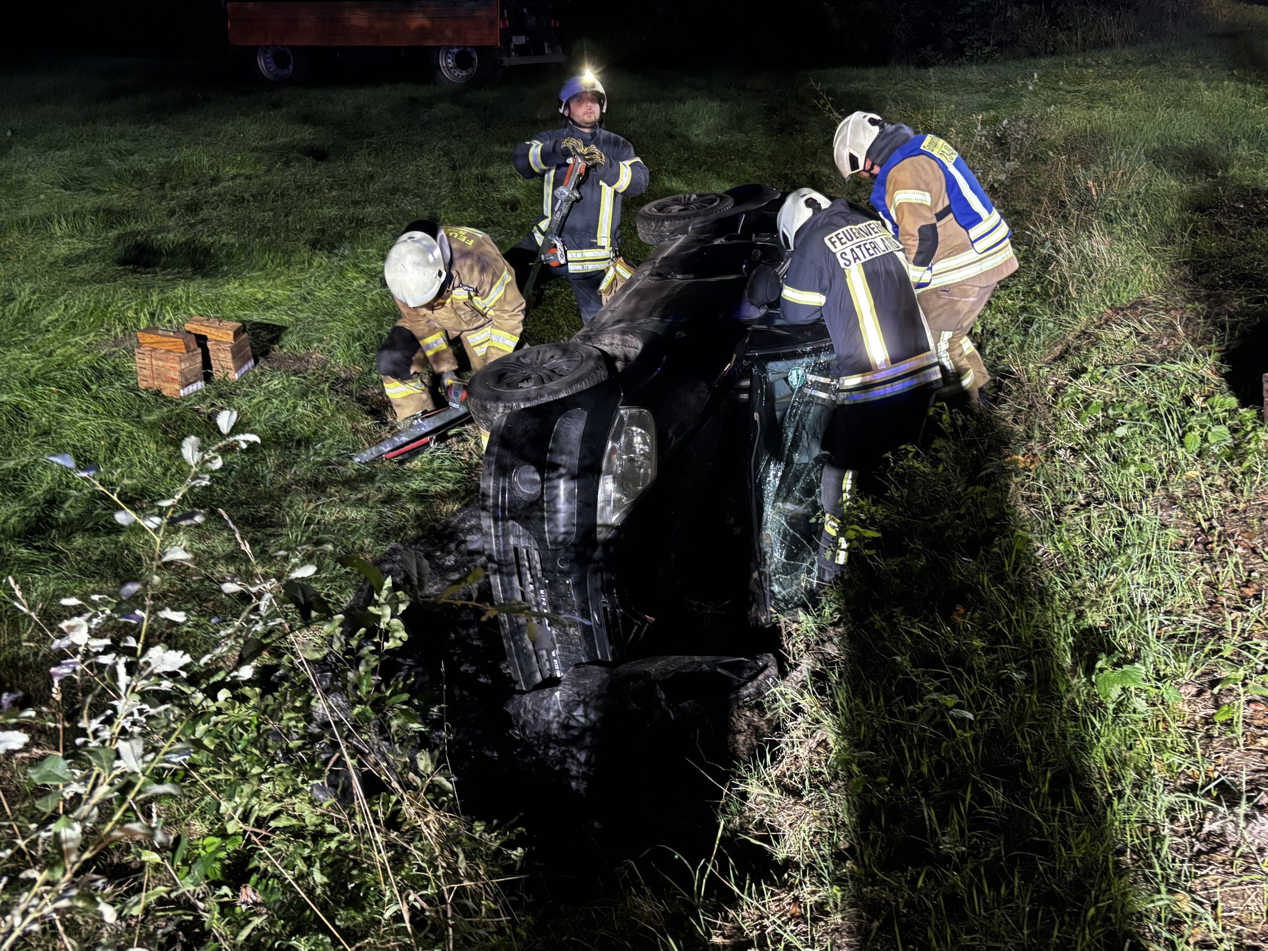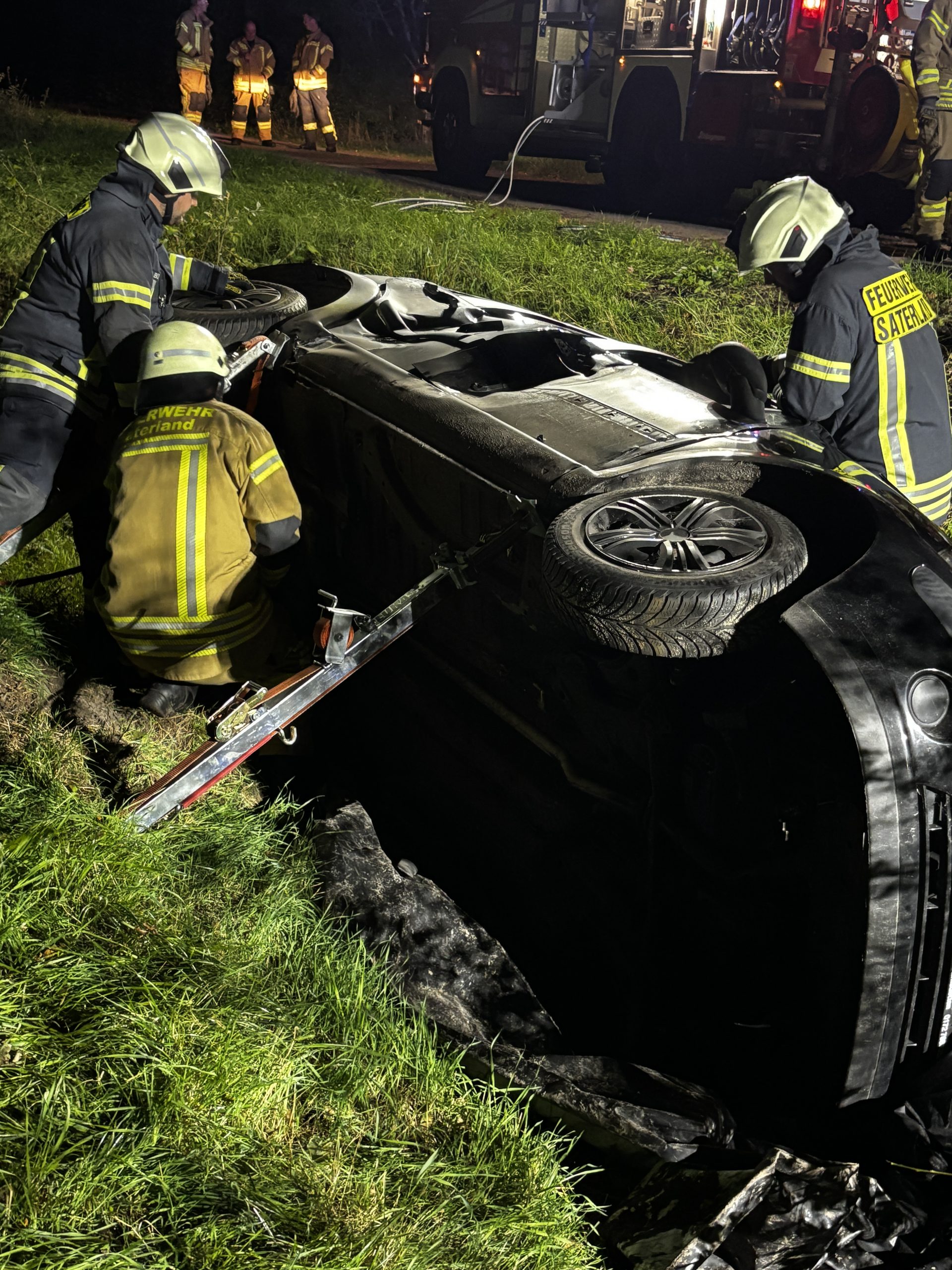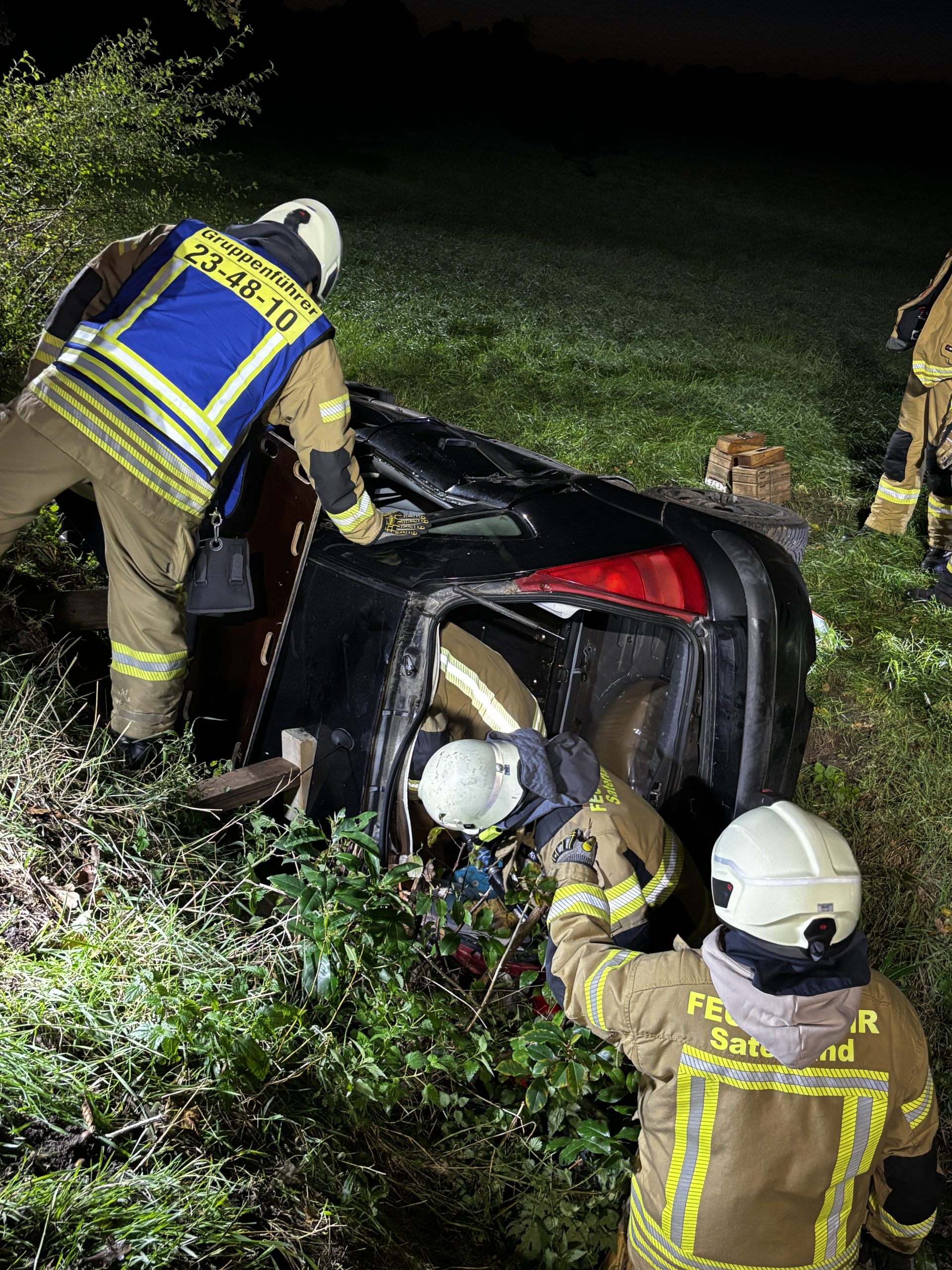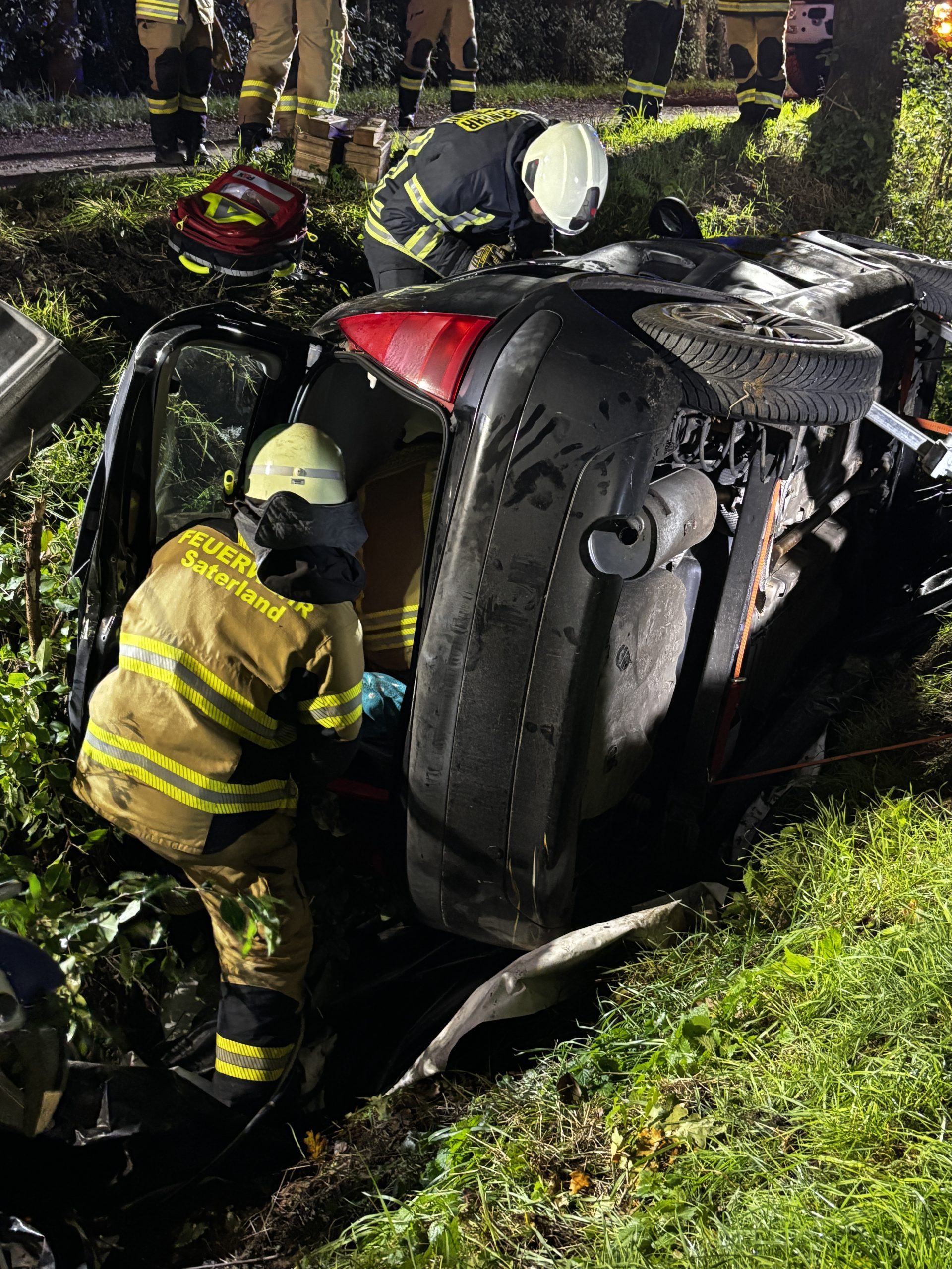 Übungslage: Ein PKW lag im Graben, eine Person war im Fahrzeug eingeklemmt.