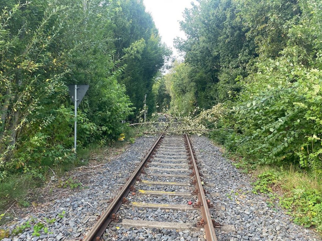 Ramsloh – Am Montag, den 16.09.25 wurden die Einsatzkräfte der FF Ramsloh gegen 18:26 Uhr durch die Großleitstelle Oldenburger Land alarmiert. Einsatzort war die Hauptstraße in Ramsloh, wo ein umgestürzter Baum die Bahnstrecke Ocholt – Sedelsberg blockierte.
