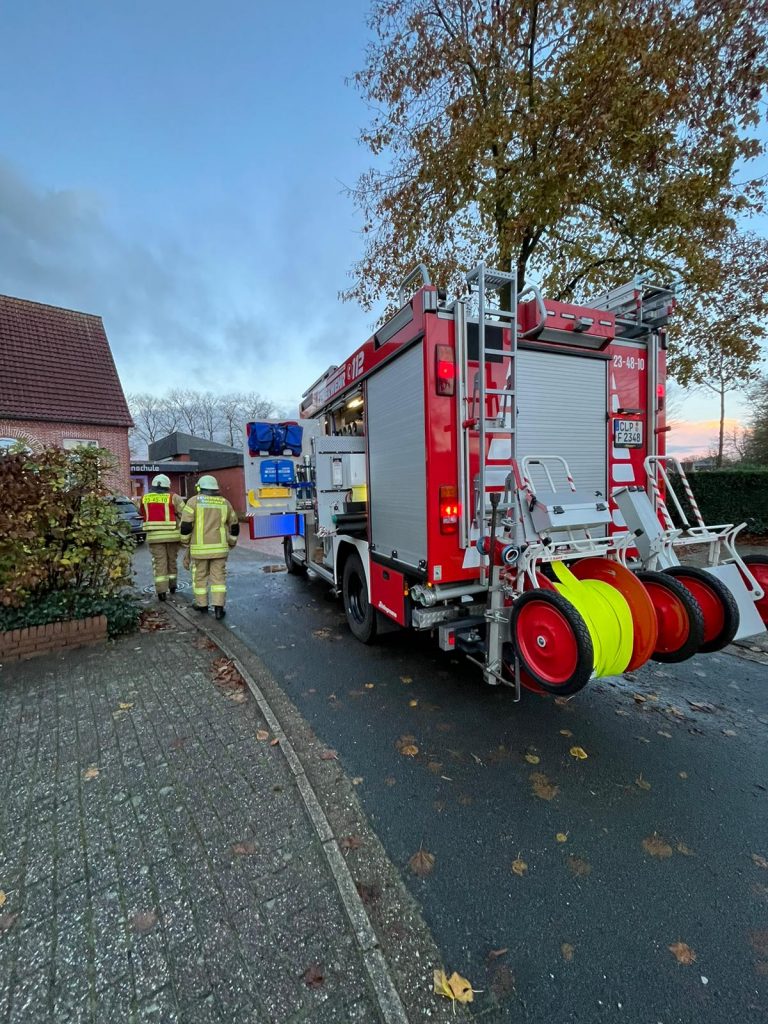 Strücklingen – Am Donnerstag, den 21.11.24 gegen 07:54 Uhr wurden die Feuerwehren aus Ramsloh und Scharrel sowie die Einsatzkräfte aus Ostrhauderfehner mit dem Einsatzstichwort F3 nach Strücklingen zur Marienschule gerufen. Beim Eintreffen der Einsatzkräfte aus Ramsloh konnte eine leichte Rauchentwicklung im Eingangsbereich eines Flures festgestellt werden. Es wurde durch die EWE die Stromversorgung unterbrochen. Weitere Einsatzkräfte aus Scharrel und Ostrhauderfehn konnten den Einsatz abbrechen. Die Kräfte aus Ramsloh setzten ein Hochdrucklüfter ein um den Flur zu entrauchen. Im Einsatz waren die Feuerwehren aus Ramsloh, Scharrel und Ostrhauderfehn, Polizei, DRK und die EWE.