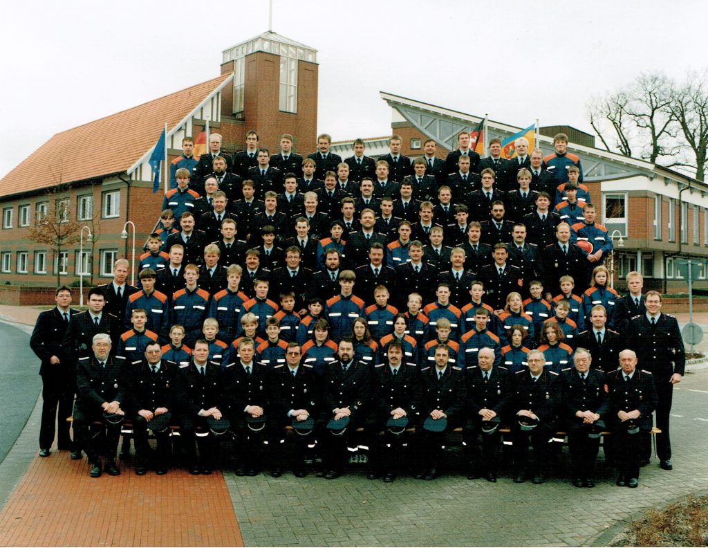 Gruppenfoto der Feuerwehren Ramsloh und Scharrel aus dem Jahre 1999