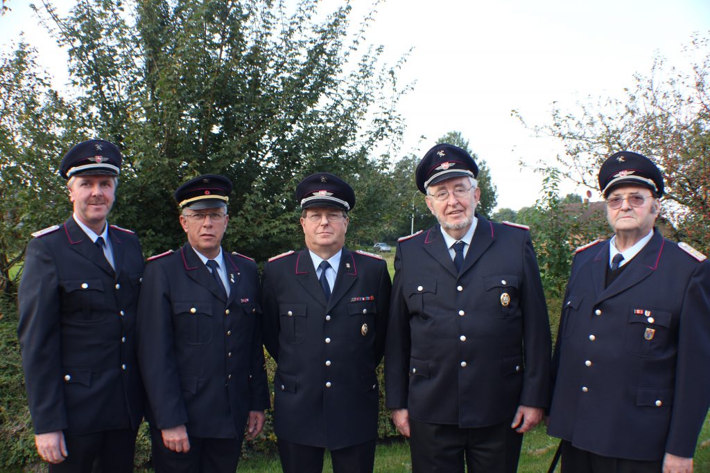 Gruppenfoto aus dem Jahre 2011 der alten und neuen Ortsbrandmeister v.l.n.r.: Horst Kruse, Heinrich Oltmanns, Johann Schulte, Hans Hermann Deddens, Hans Tebben
