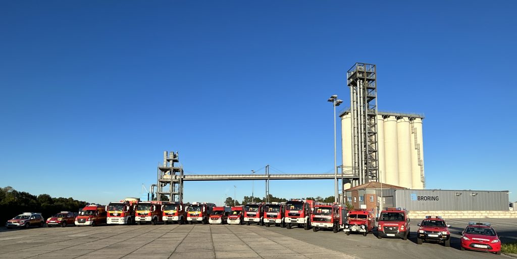 Das Bild zeigt uns die Einsatzfahrzeuge der Feuerwehren Ramsloh und Scharrel am c-Port