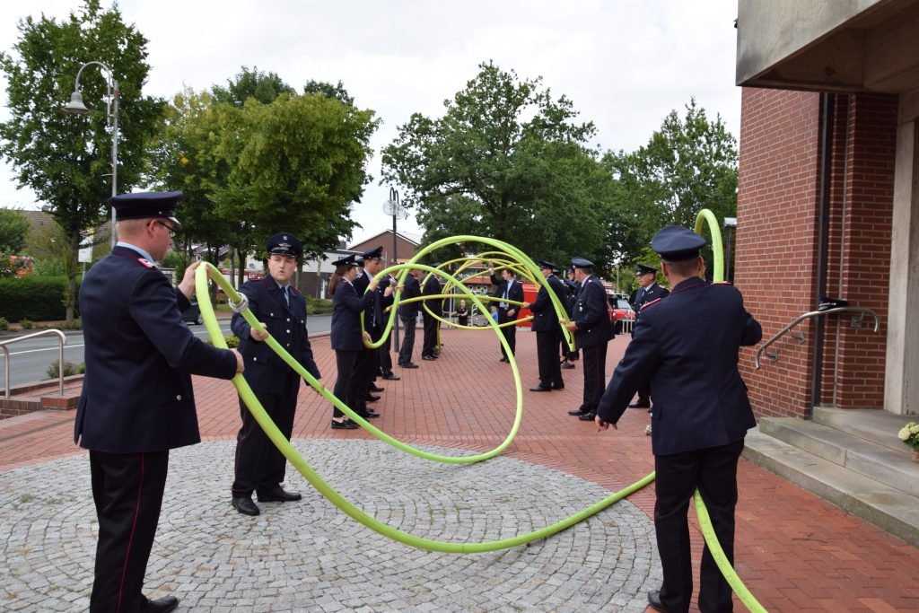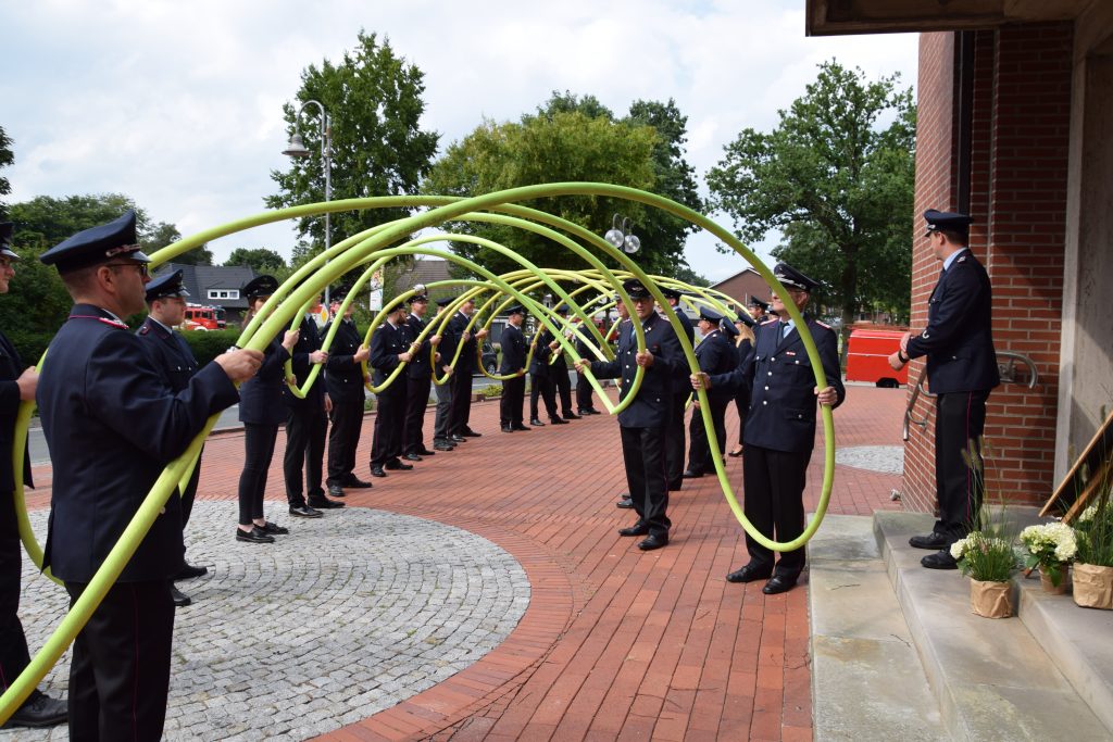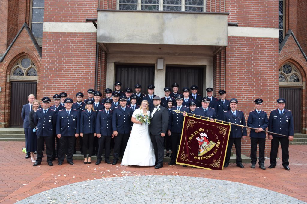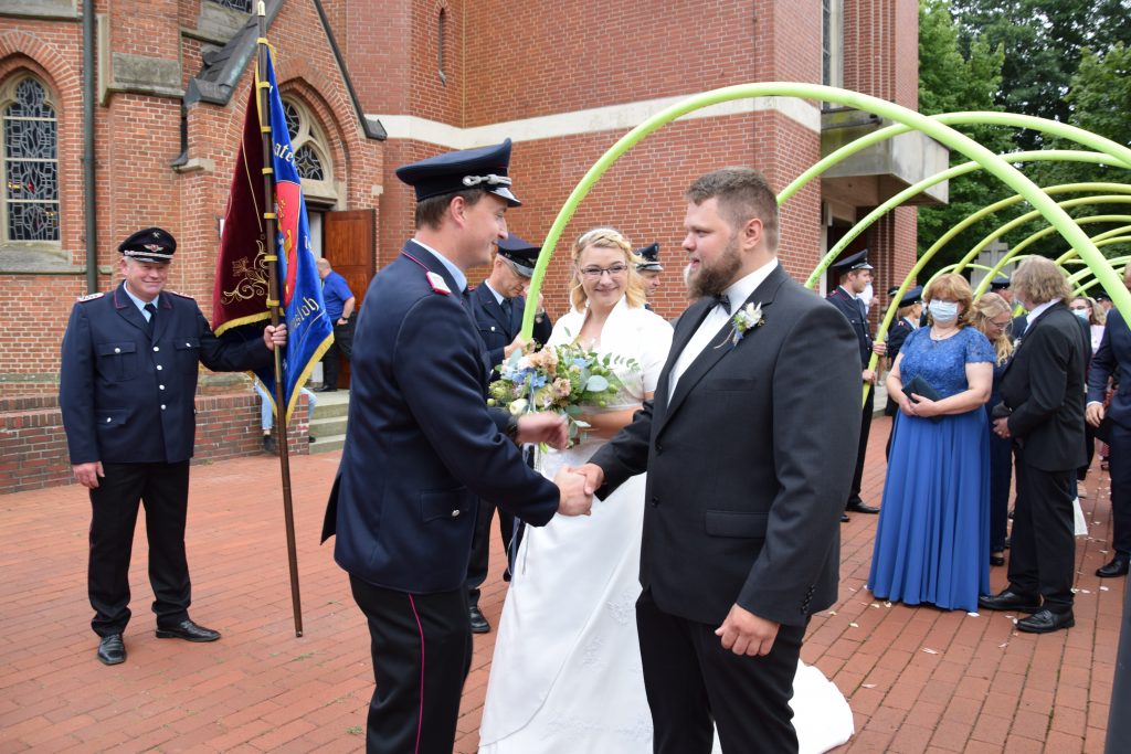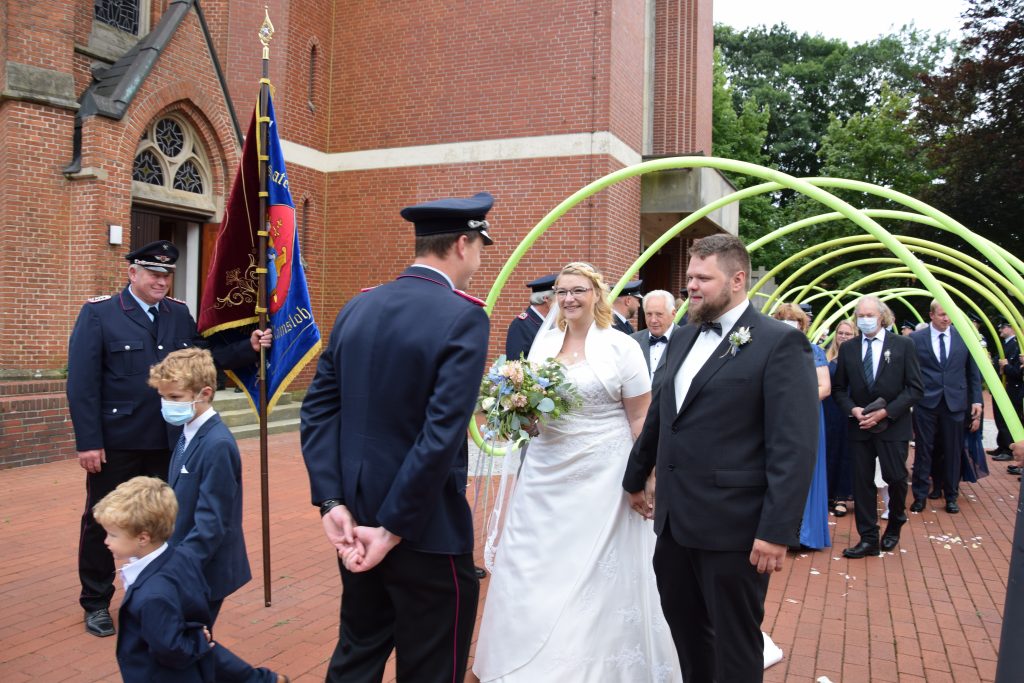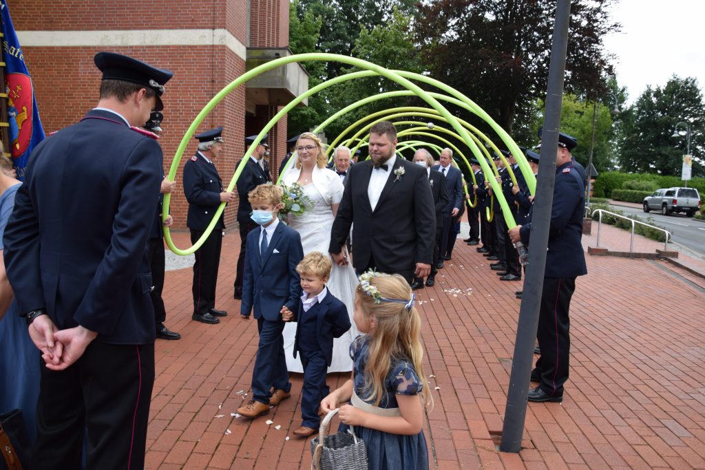 Strücklingen/ Saterland (LK Cloppenburg) – Alles Liebe und Gute zur Vermählung wünschen wir Uta und Andre, die sich am 21. August 2021 in der Kirche St. Georg in Strücklingen ihr Ja- Wort gaben. Die Kameradinnen und Kameraden der Feuerwehr Ramsloh ließen es sich nicht nehmen und erwarteten das frisch vermählte Ehepaar vor der Kirche mit einer klassischen Schlauchspirale. Ortsbrandmeister Matthias Schulte gratulierte als erster im Namen der Feuerwehr Ramsloh unserer Kameradin Uta und ihrem Ehemann Andre. Die Kameradinnen und Kameraden der Feuerwehr Ramsloh wünschen Euch für die Zukunft alles Gute.
