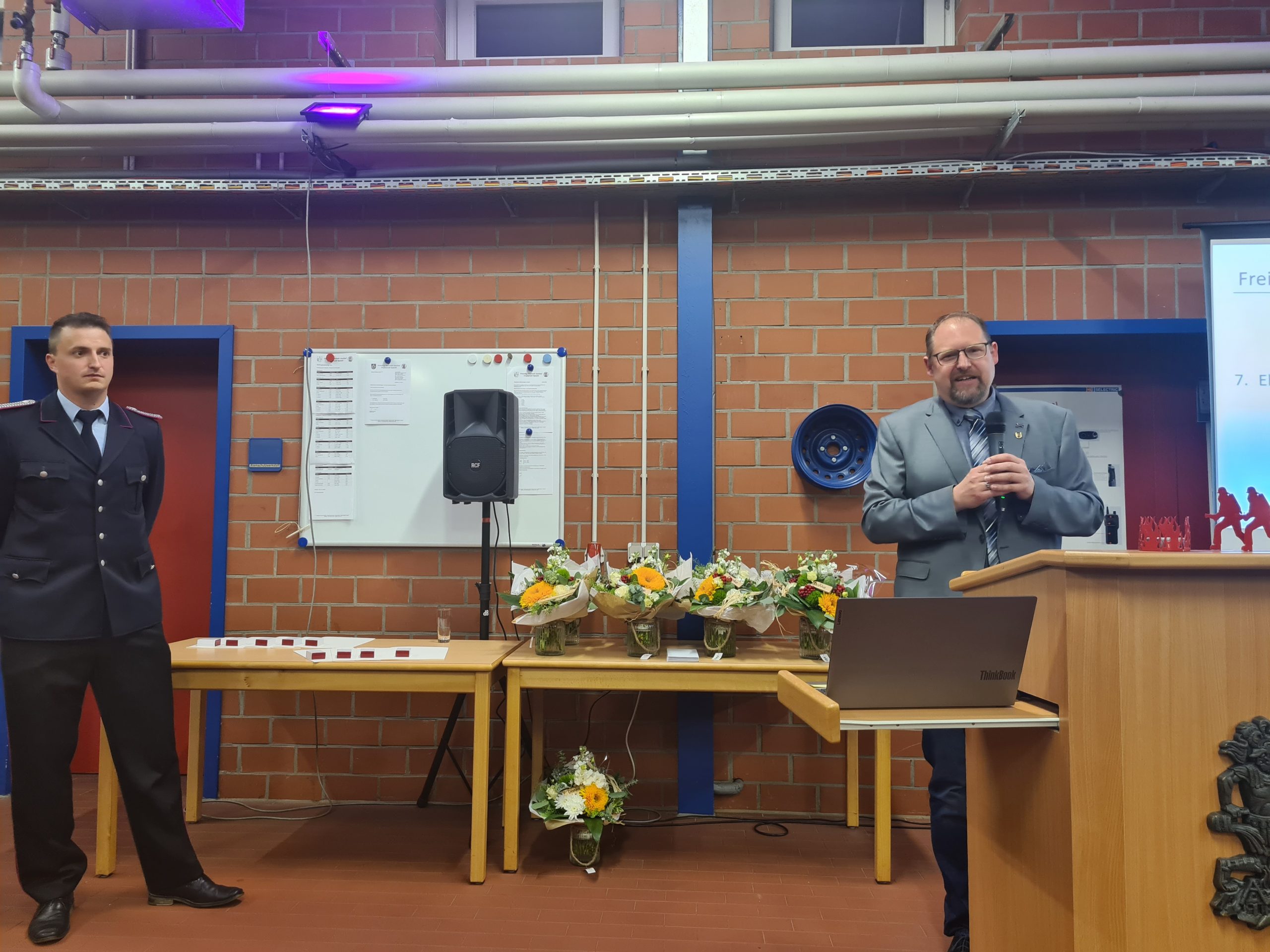 Gemeindebrandmeister Hartmut Hanekamp bedankte sich bei den Feuerwehrfrauen und -männern für die geleistete Arbeit im vergangenen Jahr, großer Dank ging an die Führung, das Ortskommando und der Jugendfeuerwehr, weiter gratulierte er allen Beförderten. Es gibt in den nächsten Jahren viele spannende Themen die wir abarbeiten möchten.