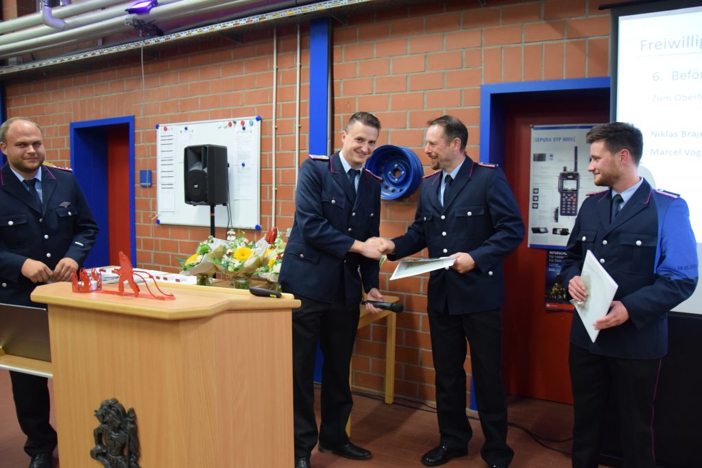 Befördert zum Oberfeuerwehrmann: Niklas Braje, Marcel Voget