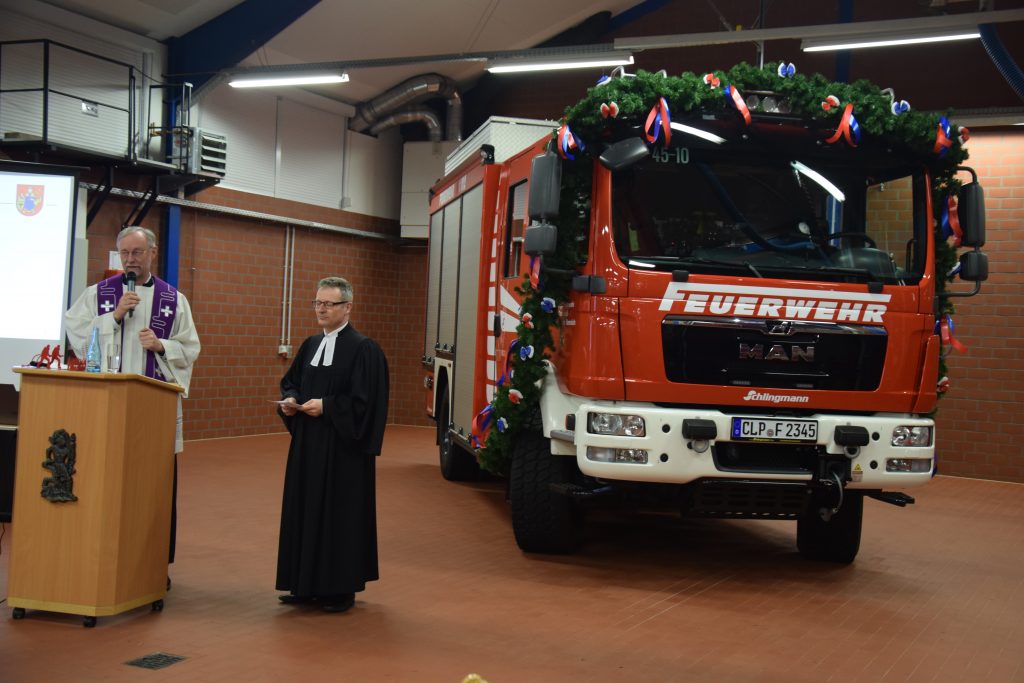Gegen 20:20 Uhr wurde zuerst die Weihung des LF 10 (Löschgruppenfahrzeug) durch Pastor Florian Bortfeld (Evangelisch) und Pastor Ludger Fischer (Katholisch) vollzogen. Die Schlüsselübergabe des Fahrzeugs übernahm Bürgermeister Thomas Otto, dieser übergab den Schlüssel an Gemeindebrandmeister Hartmut Haverkamp. Nach einer kurzen Ansprache des Gemeindebrandmeisters wurde der Schlüssel dann an Ortsbrandmeister Matthias Schulte übergeben.