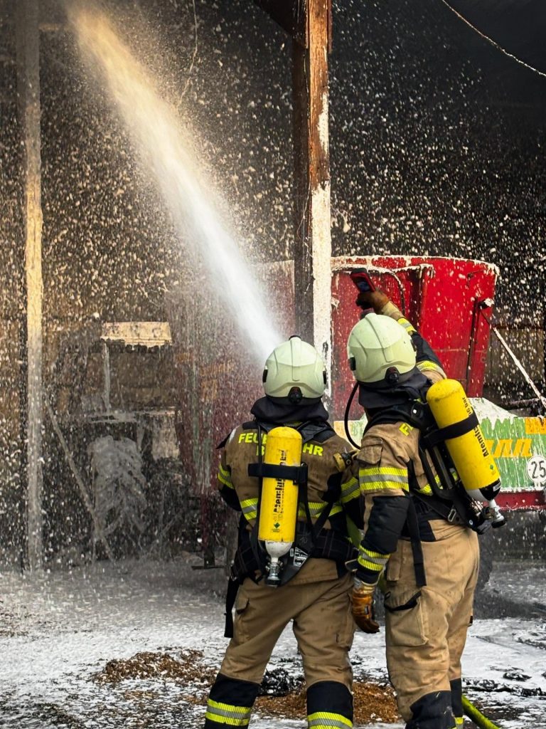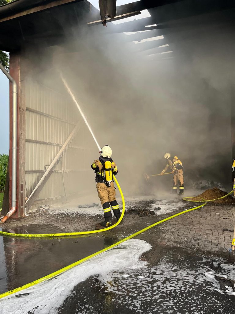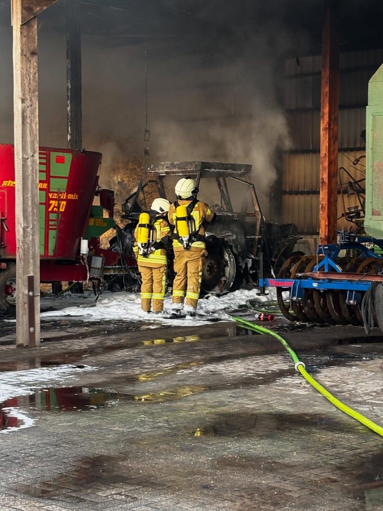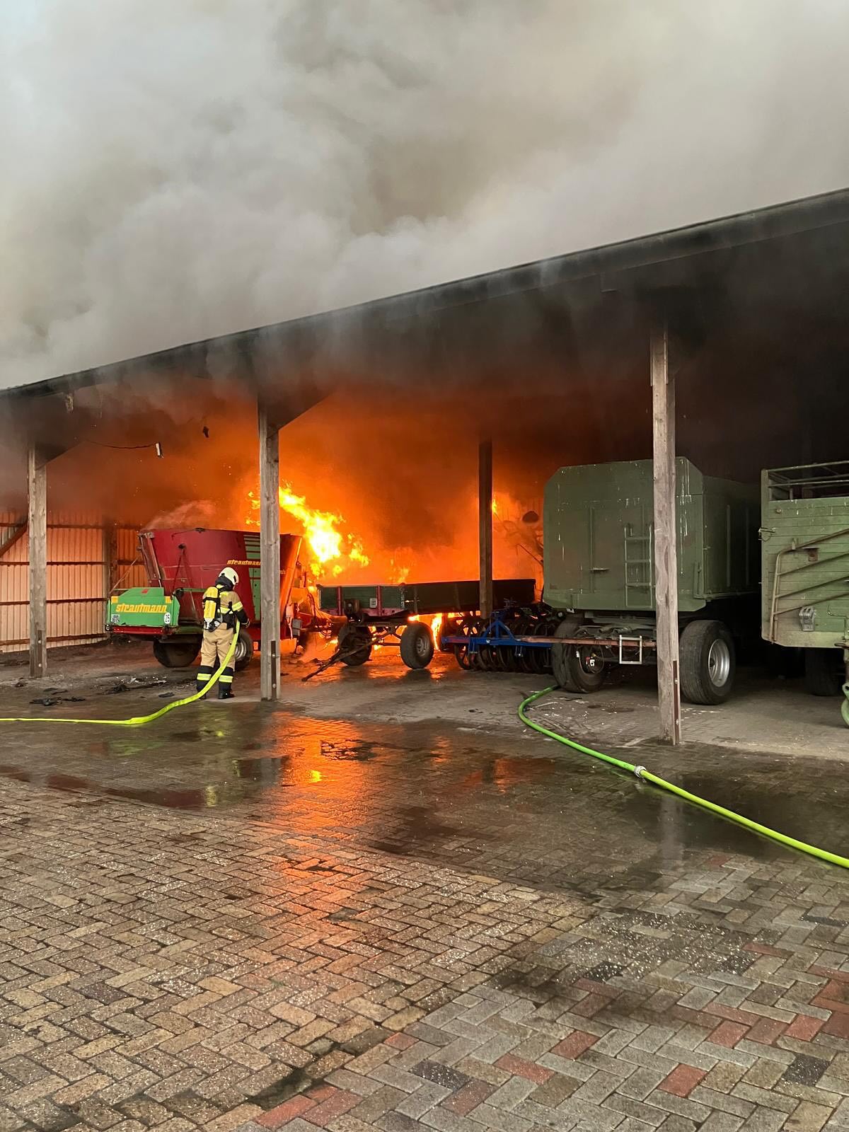 Am Mittwochabend, den 2. Juli 2025, wurde die Feuerwehr Ramsloh um 20:24 Uhr zu einem zweiten Einsatz des Tages alarmiert. In Elisabethfehn in der Schleusenstraße war eine Maschinenhalle auf einem landwirtschaftlichen Betrieb in Brand geraten. Hier wurden wir zur Unterstützung für die FF Barßel gerufen worden. Vor Ort stand ein älterer Traktor in Flammen, mit ihm mehrere Maschinen sowie eingelagertes Stroh. Gemeinsam mit den ebenfalls alarmierten Feuerwehren aus Barßel und Godensholt rückten wir zügig zur Einsatzstelle aus. Beim Eintreffen der Einsatzkräfte wurde sofort mit einem gezielten Löschangriff vorgegangen. Unter Atemschutz bekämpften die Einsatzkräfte das Feuer. Das brennende Stroh wurde mithilfe eines Radladers aus der Halle transportiert und auf einem improvisierten Ablöschplatz von der Feuerwehr Godensholt abgelöscht.