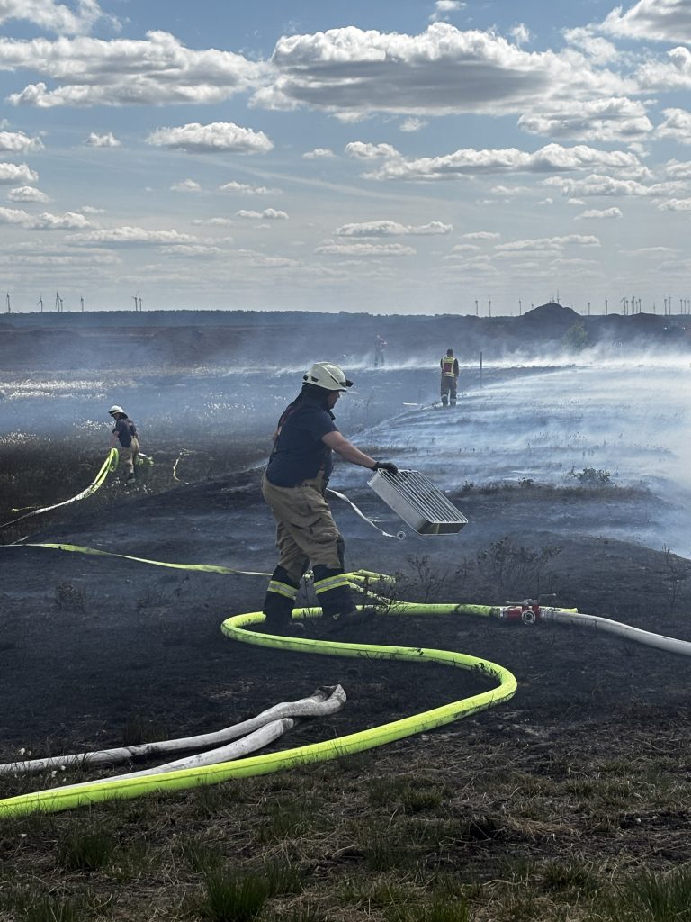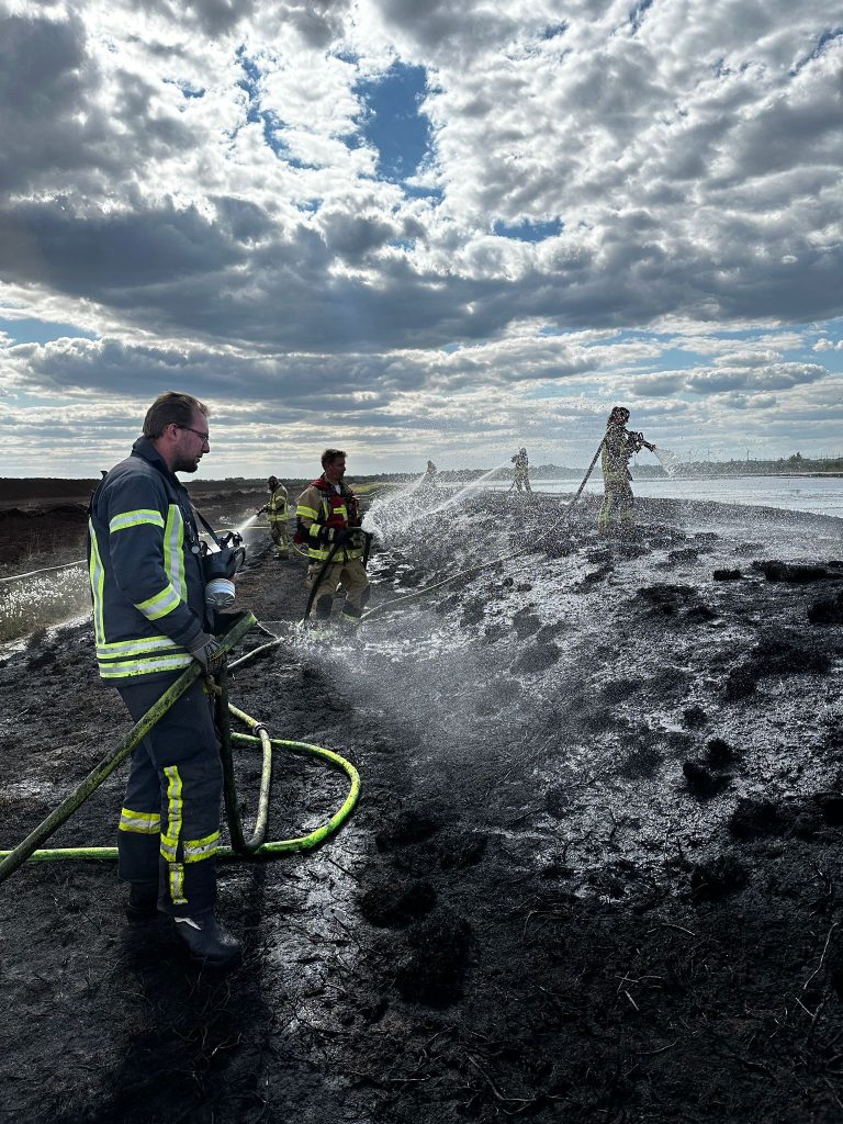 Am Donnerstag, den 08. Mai 2025 gegen 13:33 Uhr wurden die Feuerwehren Ramsloh und Scharrel zu einem Moorbrand nördlich der Esterweger Dose alarmiert. Vor Ort brannte eine ca. 570 m² große Böschung eines Renaturierungsbeckens auf einer Gesamtfläche von etwa 2,6 ha.