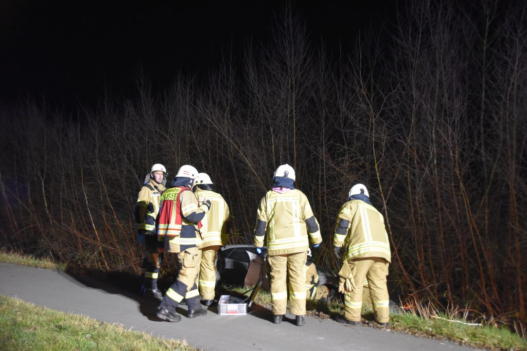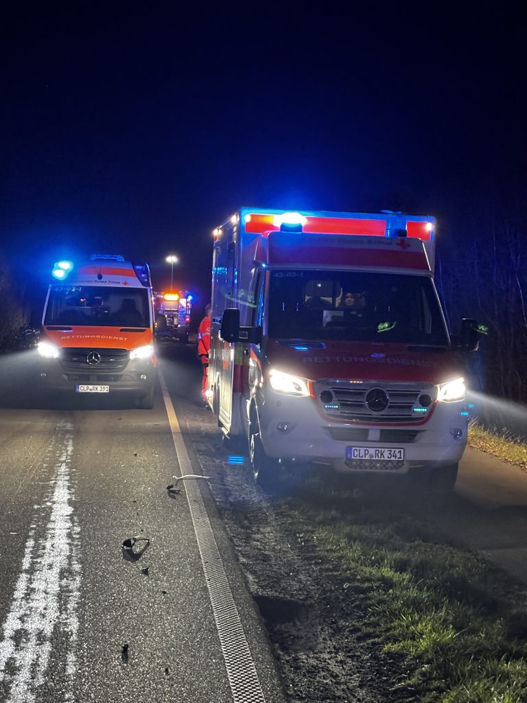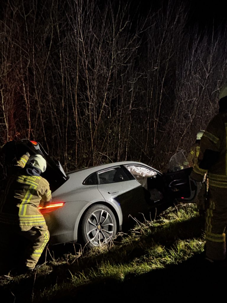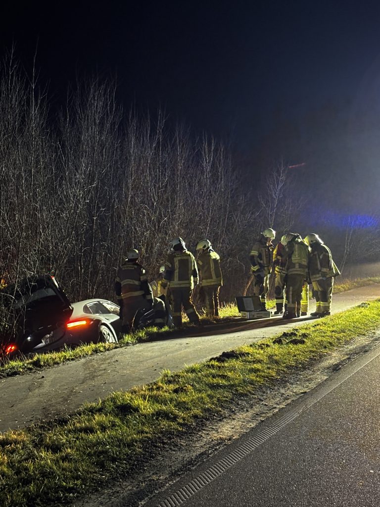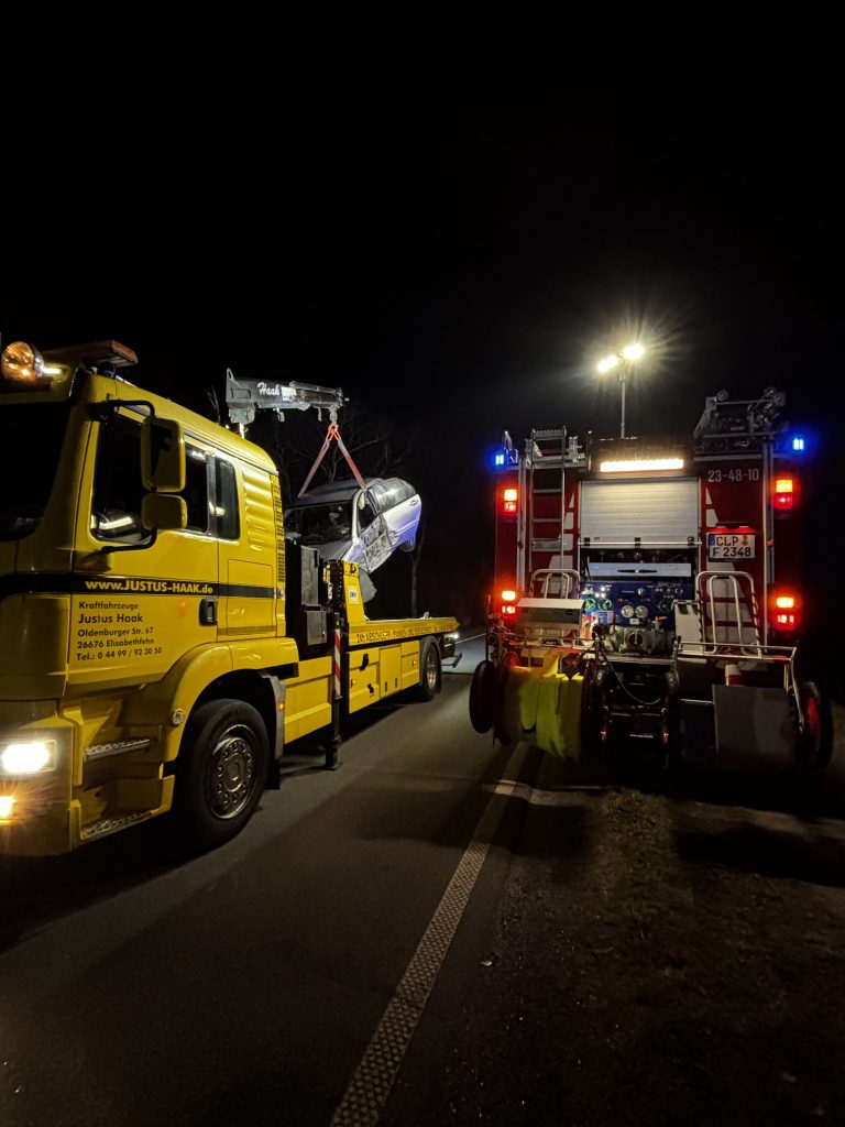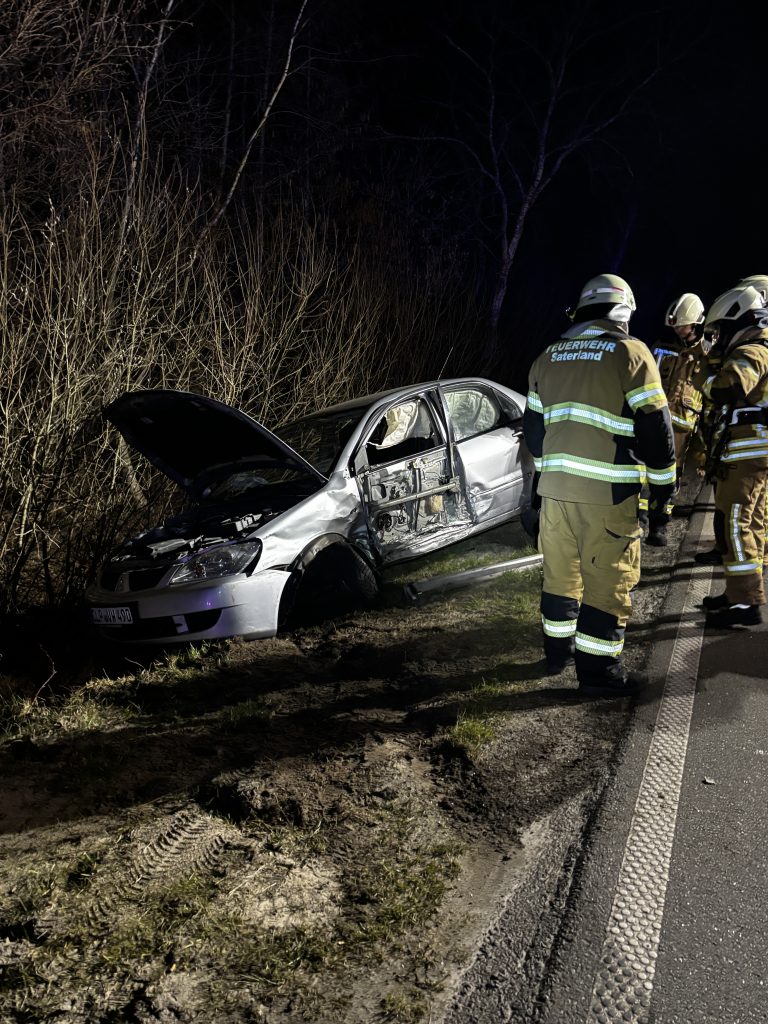 Zu einem schweren Verkehrsunfall ist die Feuerwehr Ramsloh am Mittwoch, den 05.03.2025 gegen 20:56 Uhr nach Strücklingen zur Sater Landstraße gerufen worden. Beim Eintreffen der Einsatzkräfte sah man schon zwei Fahrzeuge die zusammengestoßen waren. Ein PKW landete im Graben, dass weitere Fahrzeug stand schwer beschädigt ca. 100-150m weiter auf dem Seitenstreifen. Insgesamt waren sechs Personen verletzt und wurden sofort vom DRK und Notarzt versorgt. Alle Beteiligten waren nicht eingeklemmt und konnten sich selber befreien. Wir stellten den Brandschutz sicher, leuchteten die Unfallstelle aus und sperrten die Straßen ab. Weiter wurden durch uns alle Systeme des E-Fahrzeug vom Energiespeicher getrennt. Im Einsatz waren wir mit 6 Fahrzeugen und 39 Einsatzkräften, das DRK, Notarzt und Polizei.
