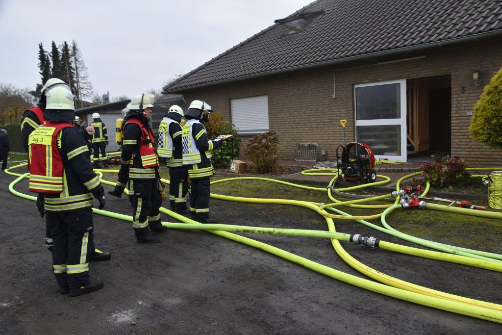 Nach ca. 3,5 Stunden konnte Kreisfeuerwehrbereitschaftsführer Hartwig Henke das Ende der Großübung aussprechen. Nach einer kleinen Nachbesprechung konnte eine positive Bilanz gezogen werden. Kreisfeuerwehrbereitschaftsführer Hartwig Henke, Kreisbrandmeister Arno Rauer und Ordnungsamtsleiter Dieter Schütte bedankten sich bei allen Teilnehmerinnen und Teilnehmern für die super Zusammenarbeit bei dieser Übung. Hier kann man wieder einmal sehen, wie gut das Zusammenspiel der einzelnen Züge ist, so Rauer.