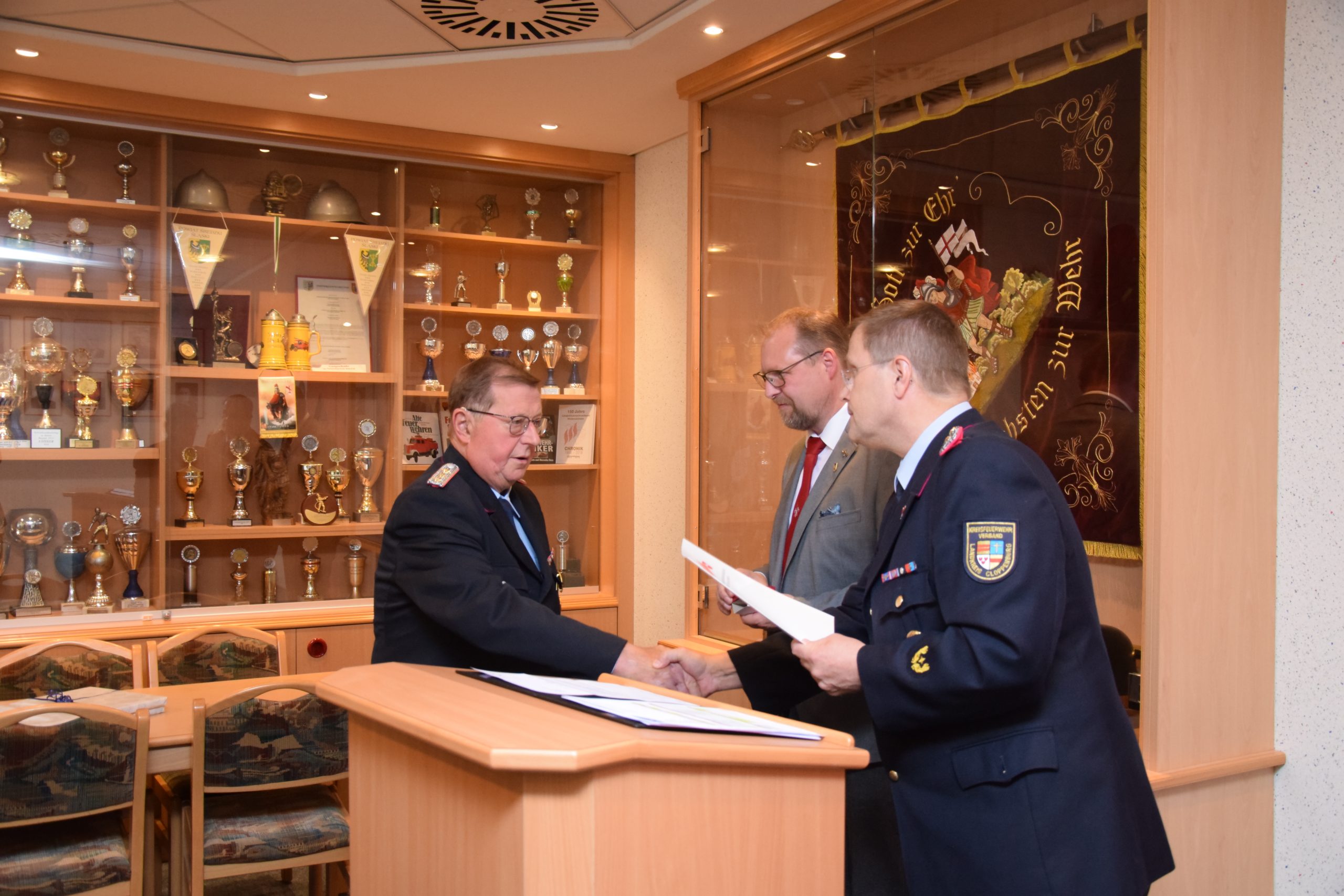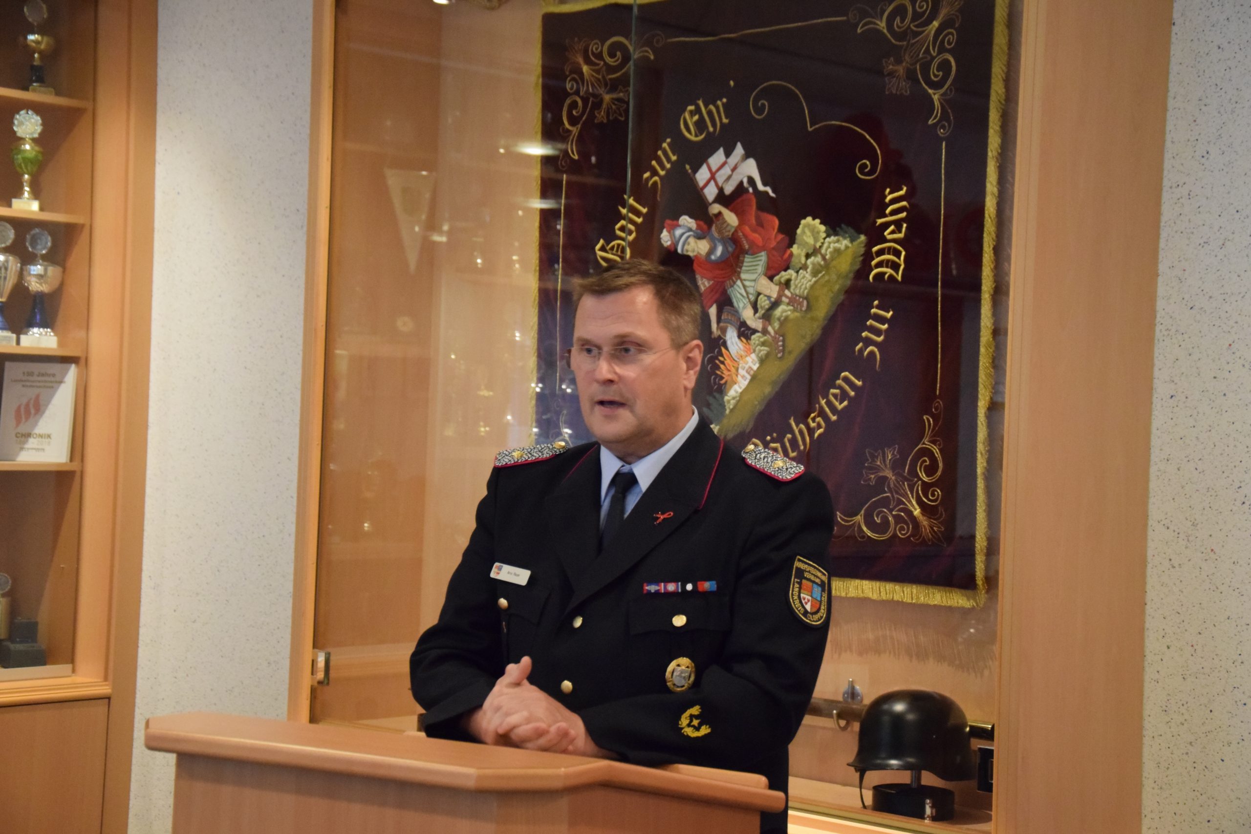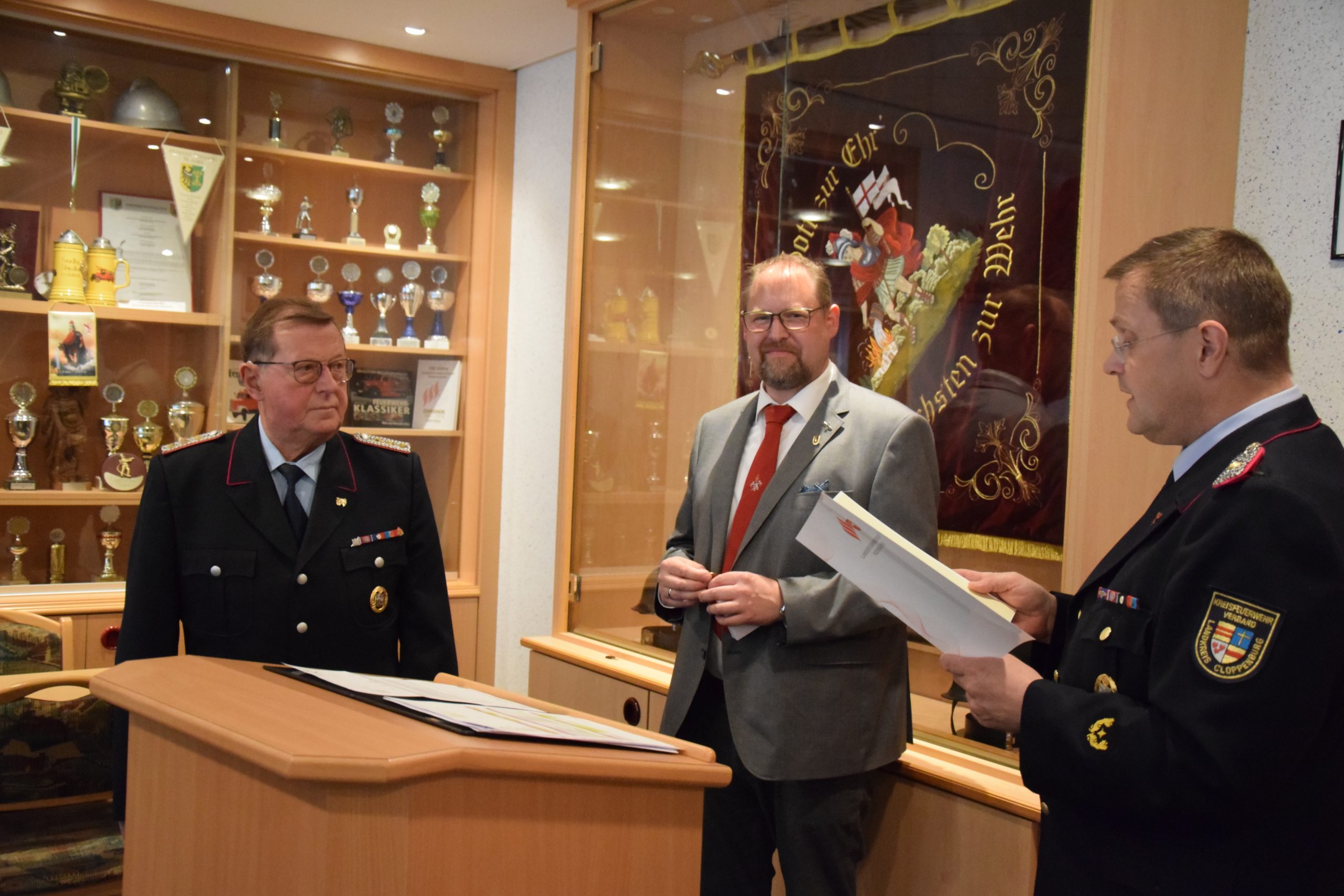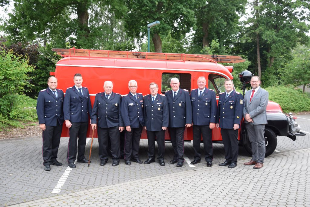 Ramsloh (LK Cloppenburg) – Für ihre jeweils 50-jährige Mitgliedschaft in der Freiwilligen Feuerwehr Ramsloh wurden am Freitag, den 25.06.2021 in einer kleinen Feierstunde im Feuerwehrhaus Ramsloh die Kameraden Johann Schulte, Bernhard Kruse, Heinrich Oltmanns und Bernhard Geesen mit einer Urkunde und einer Anstecknadel des Landesfeuerwehrverbandes Niedersachsen geehrt. Neben Ortsbrandmeister Matthias Schulte und seinem stellv. Ortsbrandmeister Timo Hinrichs, dem Gemeindebrandmeister Rolf Tebben, Gemeindepressewart Thomas Giehl, Thomas Otto Bürgermeister der Gemeinde Saterland, gratulierte auch der Kreisfeuerwehrverband Cloppenburg, vertreten durch Kreisbrandmeister Arno Rauer den vier Geehrten. Die Urkunde und die Anstecknadel des Landesfeuerwehrverbandes Niedersachsen, so KBM Arno Rauer, werden verliehen als Dank und in Anerkennung für 50-jährige Mitgliedschaft in der Freiwilligen Feuerwehr. Ein Dank ging an Bürgermeister Thomas Otto und dem Rat der Gemeinde Saterland, der voll und ganz hinter der Feuerwehr Saterland steht. Er bedankte sich nochmals bei GBM Rolf Tebben für seine 12-jährige Amtszeit als Gemeindebrandmeister, diese endet am 30.06.2021. Auch Ortsbrandmeister Matthias Schulte würdigte das ehrenamtliche Engagement der vier Kameraden, die einen großen Wandel der Feuerwehr in den letzten Jahrzehnten miterlebt und vor allem mitgestaltet haben. Ihr seid und wart für alle Kameradinnen und Kameraden immer ein Vorbild. Für sie alle ist und war die Feuerwehr mehr als nur ein Feuer zu löschen. Denn Feuerwehr ist Engagement, Gemeinschaft, Hilfsbereitschaft und soziale Verantwortung. Ortsbrandmeister Matthias Schulte und sein Stellvertreter Timo Hinrichs überreichten ein kleines Präsent von den Kameraden der Freiwilligen Feuerwehr Ramsloh. Bürgermeister Thomas Otto sagte in seiner Laudatio, ohne das ehrenamtliche Engagement der Kameradinnen und Kameraden funktioniert die Feuerwehr nicht, man kann auf die Einsatzkräfte der Feuerwehren Ramsloh und Scharrel stolz sein. Ich bin froh und sehr dankbar, an dem heutigen Abend dabei zu sein zu dürfen, so Otto. Er überreichte den Geehrten einen Gutschein und den Frauen einen Blumenstrauß. Auch Rolf Tebben, Gemeindebrandmeister der Freiwilligen Feuerwehr Saterland gratulierte den Jubilaren im Namen der aller Kameradinnen und Kameraden der Feuerwehr Saterland. Ich durfte Euch fast 35 Jahre begleiten, darauf bin ich stolz, so Tebben. Alle anwesenden Gäste wünschten den Jubilaren alles Gute für Ihre weitere Zukunft. Nach der Feierstunde wurden noch einige Anekdoten aus der Feuerwehr von den Jubilaren erzählt, hier wurde noch viel gelacht und geschmunzelt.